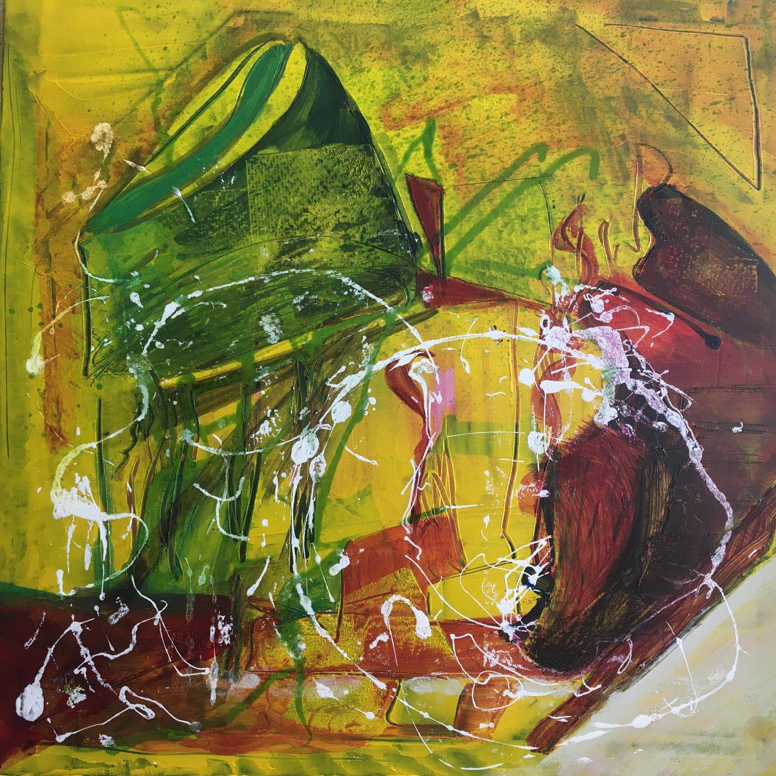 Just a little side not here, as I find it so interesting… These are two of mums paintings. She never normally paints in yellow but she felt so inclined for these two a few months ago. The one on the right especially has red in a shape that almost looks like a liver. Yellow the colour of jaundice but also of the solar plexus. Interesting how the body was almost expressing the warning before it came to light. When painting, colours and feelings come to her, leading to how she expresses herself through brushstrokes and colours. So these two became PreTSD and Liver in title painted 2 months before mum got jaundice from the blocked valve due to the tumour on her pancreas. The body knows whats going on, listen to it.